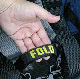 As a secondary safety feature (when the buggy is being used) this handle is disabled by safety straps. To fold the buggy