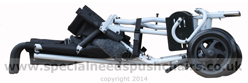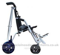 The Trotter is 'crash tested' it is Approved for use in a vehicle tested to ANSI standard 7176/19, subject to the relevant optional accessories being used. The Trotter is CE marked and has been tested by the factory to ISO 7176/8 The Trotter has flexible plastic non pneumatic wheels which operate well on smooth surfaces not rough ground. The Seat can be configured to suit the occupant and has adjustable seat angle. |