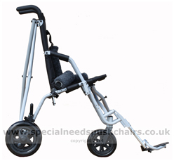 The Trotter is 'crash tested' it is Approved for use in a vehicle tested to ANSI standard 7176/19, subject to the relevant optional accessories being used. The Trotter is CE marked and has been tested by the factory to ISO 7176/8 The Trotter has flexible plastic non pneumatic wheels which operate well on smooth surfaces not rough ground. The Seat can be configured to suit the occupant and has adjustable seat angle. |